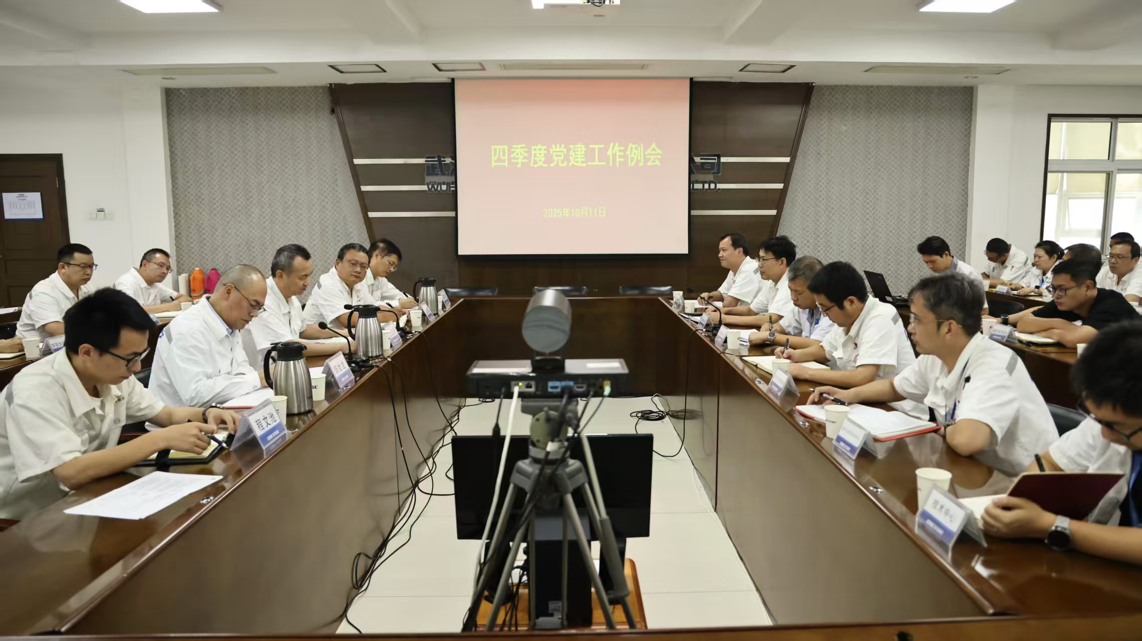 10月11日,中船集團武漢船機召開2025年四季度黨建工作例會,傳達學(xué)習(xí)中央和上級有關(guān)會議精神,安排部署近期黨建重點工作。公司領(lǐng)導(dǎo)程立兵、潘文勝、陳世龍、胡發(fā)國、程文池出席會議。會議由公司黨委委員、總會計師陳世龍主持。
