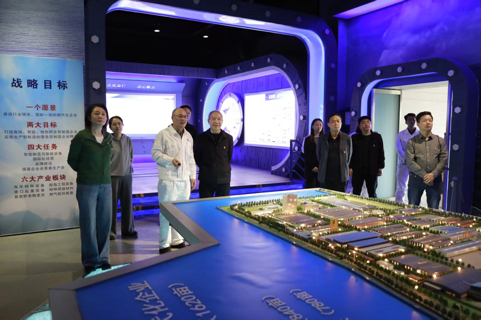 期間,中船投資一行參觀了公司綜合展廳,實地考察了智能制造中心、海洋工程機電設備國家工程中心等。